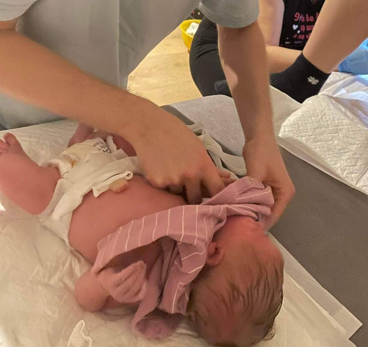 Na takiej wizycie realizuję świadczenia medyczne u mamy i noworodka po wyjściu ze szpitala. Oceniam rozwój dziecka, kontroluję wagę, rozwiązuję problemy zdrowotne, pomagam w pielęgnacji. U mamy kontroluję stan położniczy po porodzie, ściągam szwy, pomagam w karmieniu dziecka, wspieram w przejściu okresu połogowego.